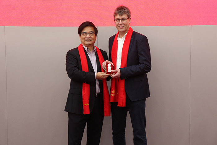 上午,受紅雙喜品牌的邀請(qǐng),所有參會(huì)經(jīng)銷商參加了中國(guó)乒乓商業(yè)精英?國(guó)際乒乓博物館參訪活動(dòng),國(guó)際乒聯(lián)主席托馬斯?維克特先生也受邀出席。上海紅雙喜股份有限公司董事長(zhǎng)樓世和先生向國(guó)際乒聯(lián)贈(zèng)送一枚銀鑲玉乒乓球,這枚乒乓球以里約奧運(yùn)會(huì)比賽用球?yàn)樵妫蝮w為純銀材質(zhì),底座則采用了具有中國(guó)風(fēng)格的玉石材質(zhì)。托馬斯?維克特作為國(guó)際乒聯(lián)代表接受了這枚具有紀(jì)念意義的乒乓球,并轉(zhuǎn)交給國(guó)際乒聯(lián)博物館。托馬斯?維克特先生還現(xiàn)場(chǎng)向所有經(jīng)銷商頒發(fā)了榮譽(yù)館員證書。經(jīng)銷商紛紛與乒聯(lián)主席合影彰顯國(guó)球在中國(guó)強(qiáng)大的魅力。鏈接:國(guó)際乒乓博物館里好東西真不少,您見過一半算我輸!