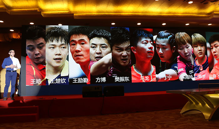 紅雙喜市場(chǎng)部經(jīng)理、產(chǎn)品中心主任管亞松先生對(duì)2018紅雙喜市場(chǎng)運(yùn)營(yíng)規(guī)劃向與會(huì)經(jīng)銷商進(jìn)行講解。2018年紅雙喜將重點(diǎn)對(duì)現(xiàn)有產(chǎn)品進(jìn)行深度優(yōu)化:從產(chǎn)品外觀包裝到產(chǎn)品細(xì)節(jié)設(shè)計(jì),紅雙喜堅(jiān)持服務(wù)消費(fèi)者的理念,力求為消費(fèi)者帶來更完美的使用體驗(yàn)。2018年紅雙喜將進(jìn)一步加大市場(chǎng)宣傳力度,更多國(guó)手代言;更多比賽宣傳,更多媒體投入以及更豐富的線下宣傳展示。