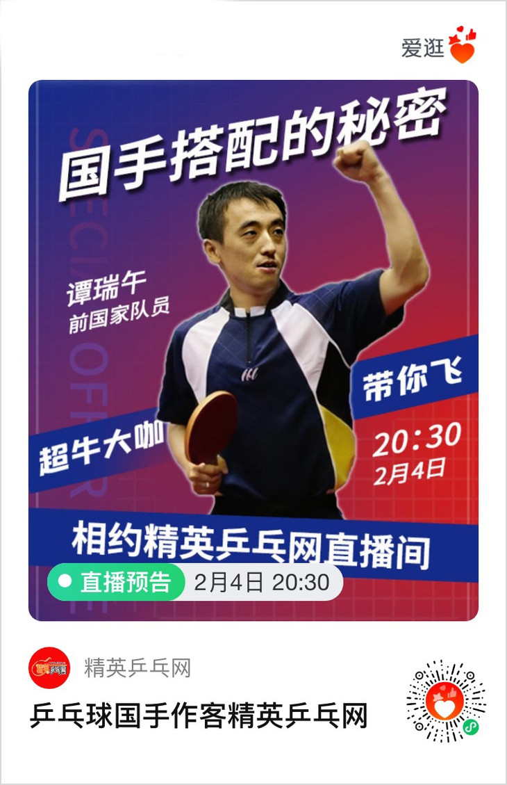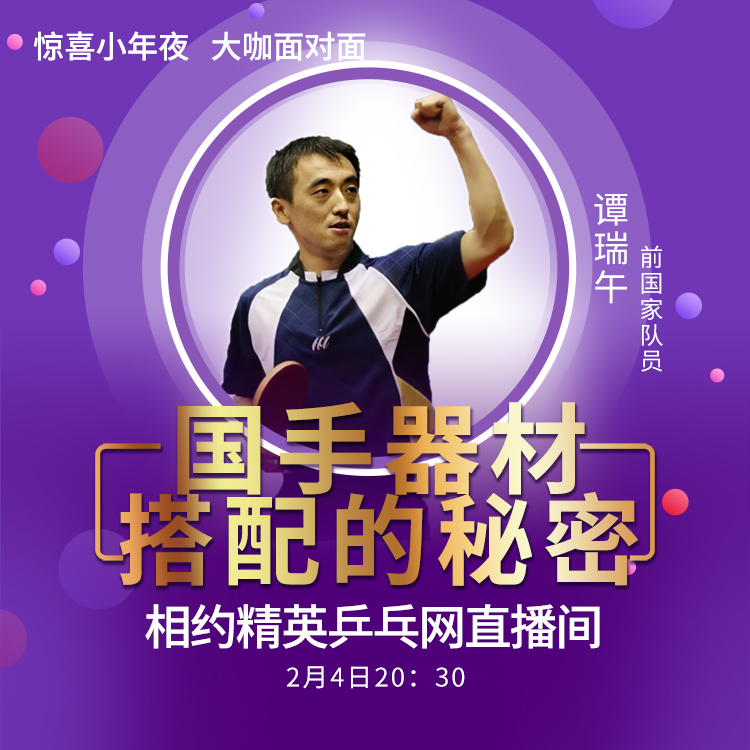 能跟這樣一位大神溝通交流真真的是天大的福利,不管是技術(shù)教學(xué)還是器材搭配甚至是國手小秘密都可以跟譚指導(dǎo)交流,鎖定精英乒乓網(wǎng)直播間,小年夜我們不見不散!