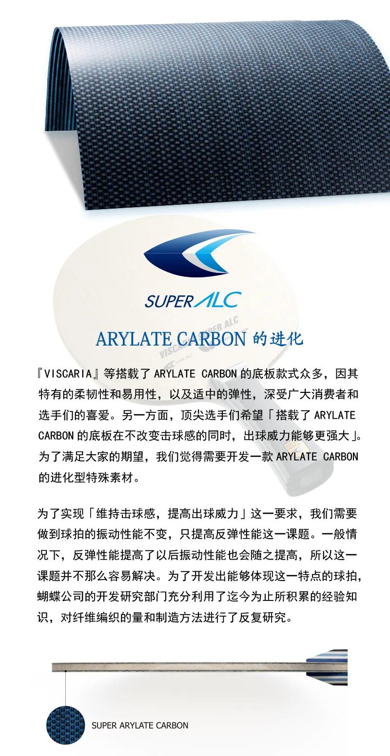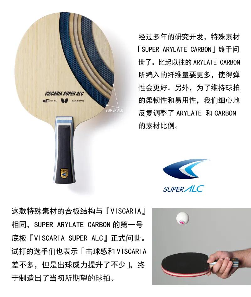 VISCARIA SUPER ALC底板構(gòu)成等基礎(chǔ)設(shè)計沿襲了蝴蝶名作「VISCARIA」底板,但因為搭載了「SUPER ARYLATE CARBON」,所以成功做到振動特性基本不改變的同時反彈性能比『VISCARIA』要高出很多。