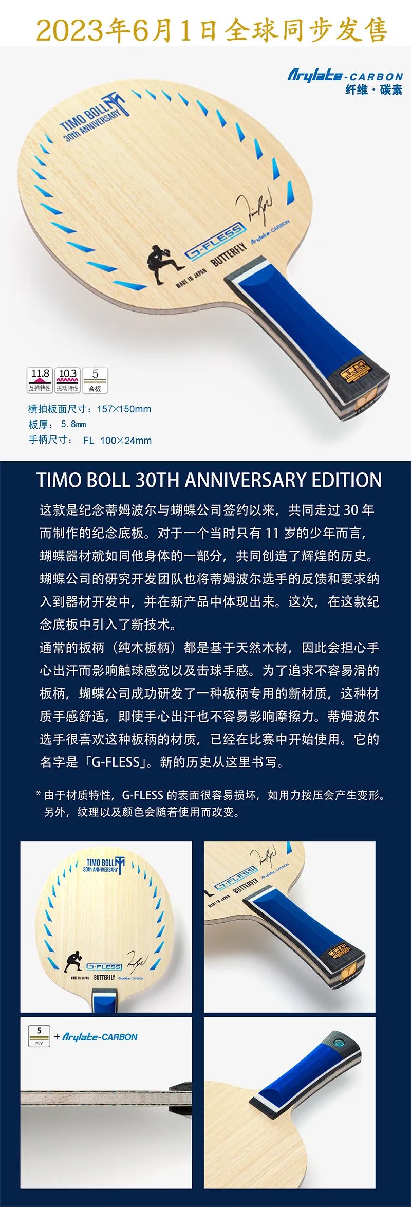 蝴蝶TIMO BOLL 30周年紀(jì)念底板,6月1日全球同步發(fā)售!