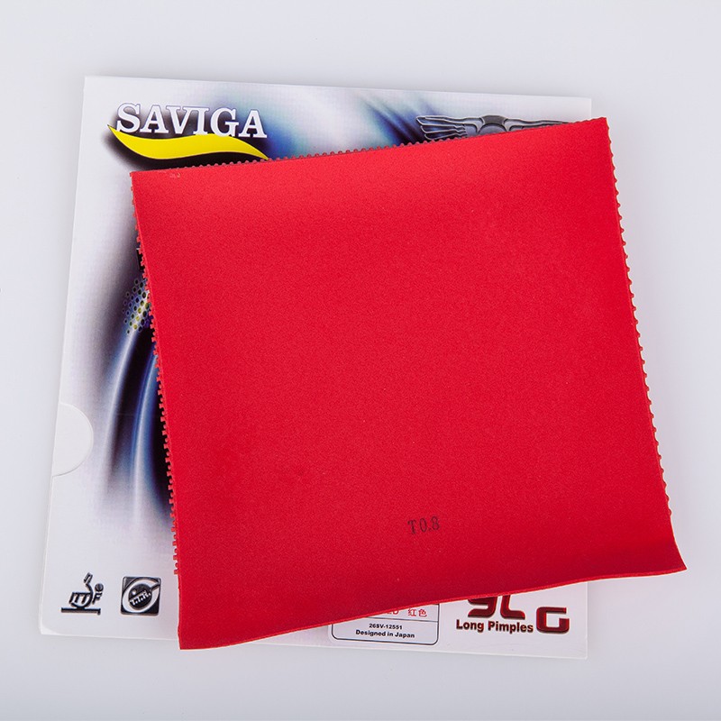 SAVIGA V 的新型長(zhǎng)膠YL在保持原有長(zhǎng)膠擊球多變性的基礎(chǔ)上采用了長(zhǎng)膠粒子的頂端固化技術(shù),增強(qiáng)了擊球的攻擊性,是一款特別適合前臺(tái)打法的選手使用的膠皮