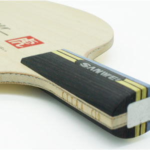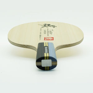此款底板為5木2芳碳結(jié)構(gòu)、芳碳層壓制在力材與芯材之間,芯材采用阿由斯結(jié)構(gòu),力求達(dá)到提高控制增加速度的性能,使其整體性能符合弧圈快攻技術(shù)打法要求。