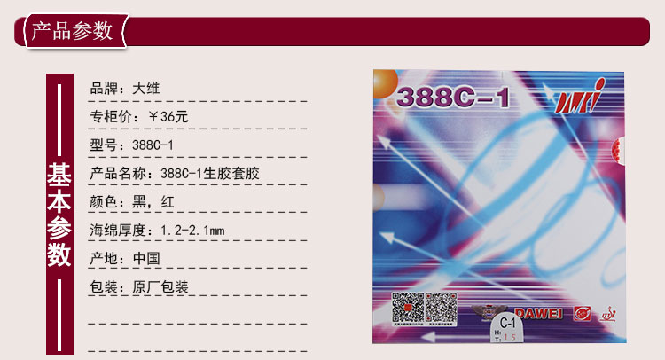 - 商品名稱(chēng):大維388C-1生膠套膠