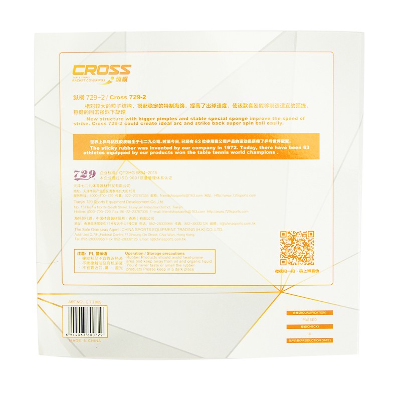 縱橫729-2反膠是由天津橡膠研究所研制的產(chǎn)品。它是在原"729"反膠的基礎(chǔ)上發(fā)展的一款新型反膠,高彈性、速度快、前沖性快攻反膠。既有速度,又有旋轉(zhuǎn),配以橙色縱橫海綿更能發(fā)揮其威力。同時(shí)新型儲(chǔ)能貼合技術(shù)的應(yīng)用更能體現(xiàn)其中遠(yuǎn)臺(tái)的出球威力,適合快攻弧圈的選手使用。