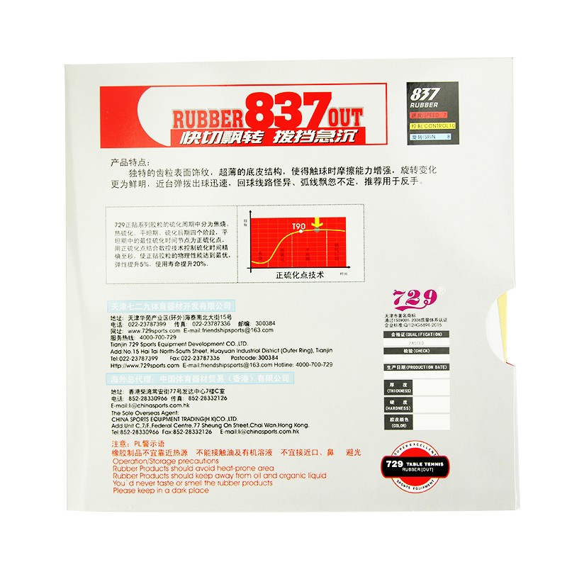 729正貼系列膠粒的硫化周期中分為焦燒,熱硫化,平坦期,硫化后期四個階段,平坦期中的硫化時間節(jié)點為正硫化點,用正硫化點結(jié)合數(shù)控技術(shù)控制硫化時間精確至秒,使正貼膠粒的物理性能達到最優(yōu),彈性提升5%,使用壽命提升20%。