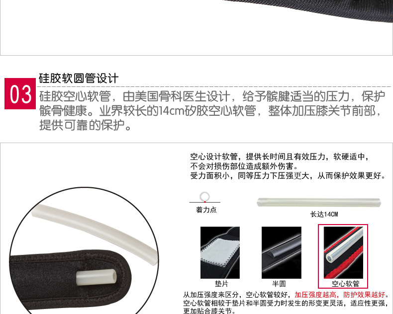 顧客醫(yī)師設(shè)計圓形橡膠軟管,給予臏腱適當(dāng)?shù)膲毫?,有助于維持髕骨正常的滑動。