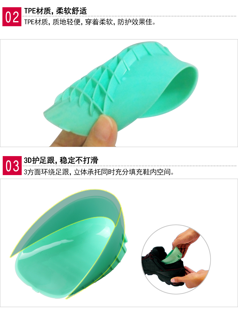 功能特色:特殊材質(zhì)設(shè)計(jì),質(zhì)輕,防護(hù)效果佳,可吸收足跟與地面接觸的多余能量。