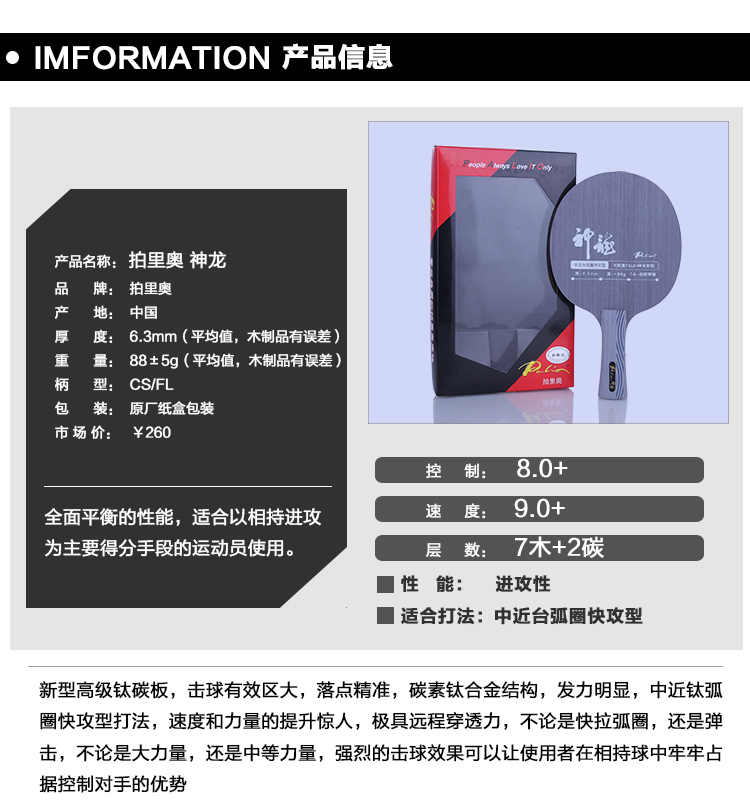 - 商品名稱:拍里奧 神龍 乒乓球底板