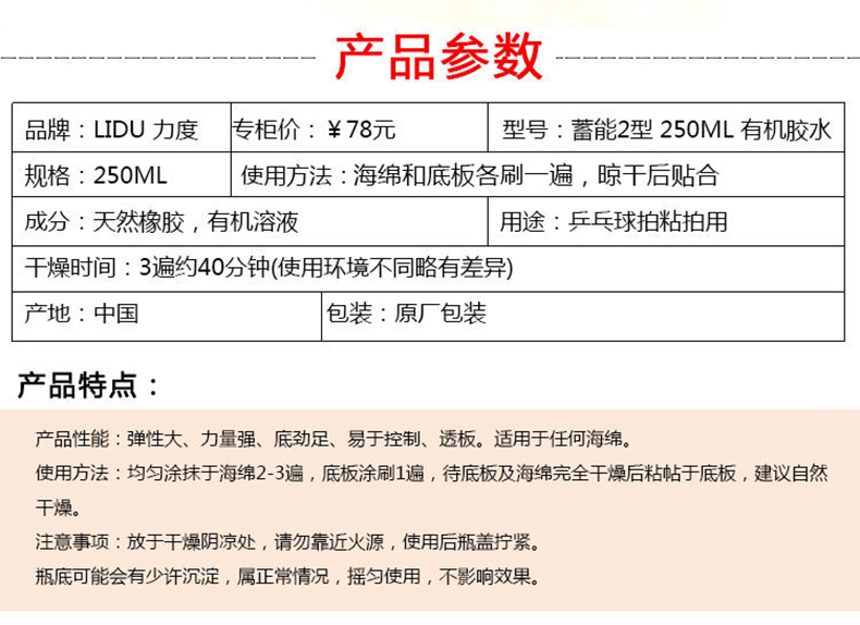 產(chǎn)品性能:彈性大、力量強(qiáng)、底勁足、易于控制、透板,適用于任何海綿。