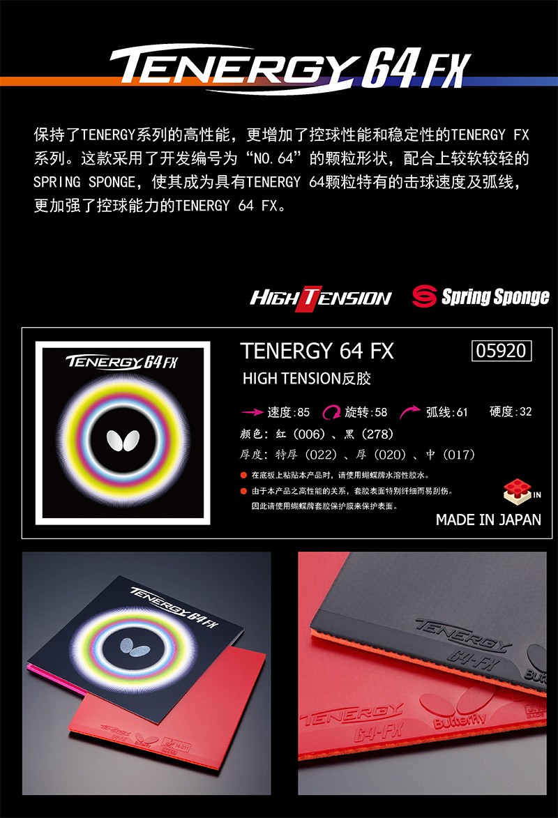 型號:BUTTERFLY TENERGY 64-FX