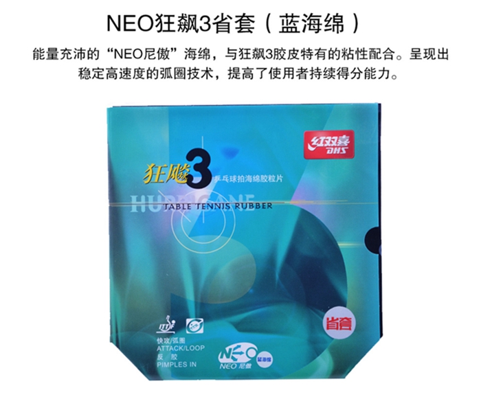 - 商品名稱:紅雙喜neo藍省藍海綿尼傲NEO省套狂飆狂飚三 尼奧藍省狂3