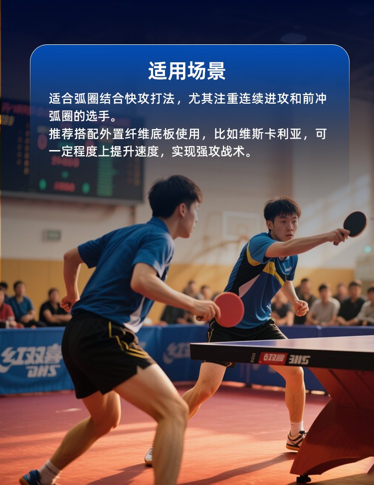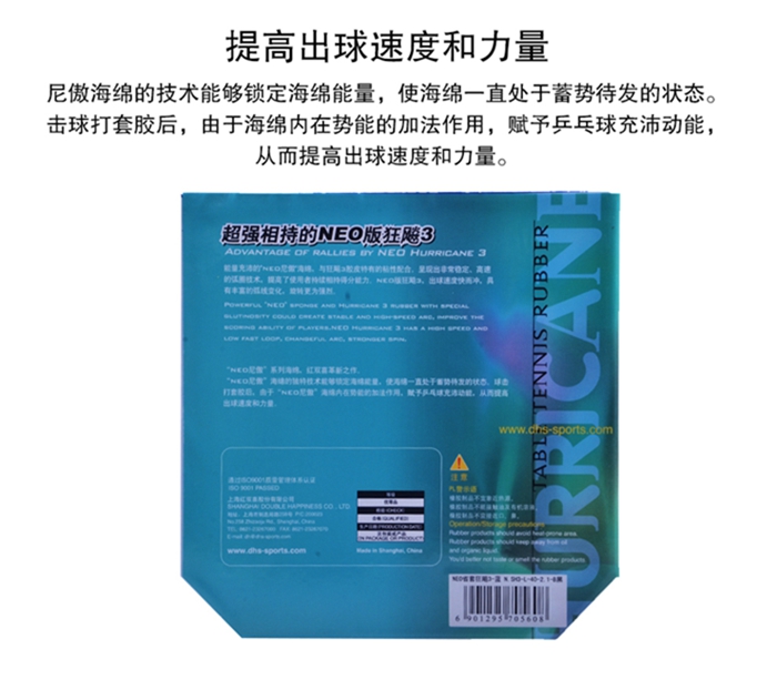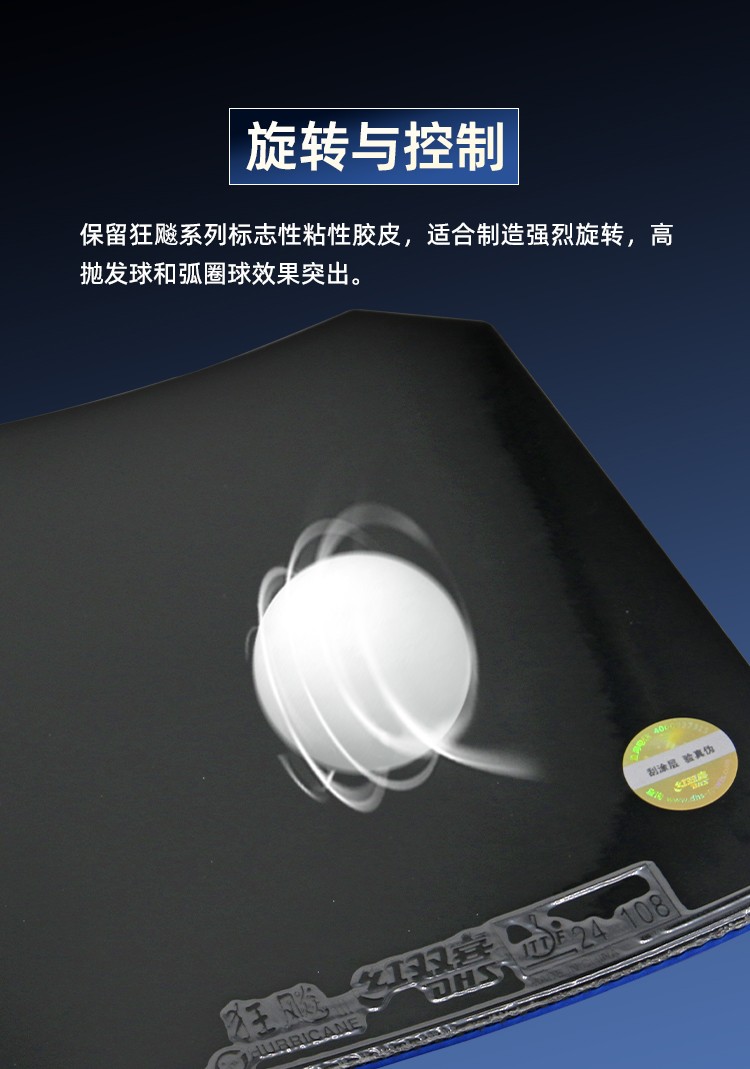 能量充沛的“NEO尼傲”海綿,與狂飚3膠皮特有的粘性配合。呈現(xiàn)出非常穩(wěn)定、高速的弧圈技術(shù),提高了使用者持續(xù)得分能力。NEO版狂飚3,出球速度,快而沖,具有豐富的弧線變化,旋轉(zhuǎn)更為強烈。
