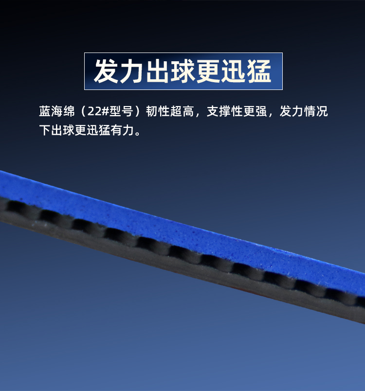 “NEO尼傲”海綿的獨特技術(shù)能夠鎖定海綿能量,使海綿一直處于蓄勢待發(fā)的狀態(tài)。擊球打套膠后,由于“NEO尼傲”海綿內(nèi)在勢能的加法作用,賦予乒乓球充沛動能,從而提高出球速度和力量。