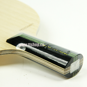 板的結(jié)構(gòu)為3木2碳,屬于柔中帶剛性能均衡的弧圈板。面材較厚較軟。手感柔和,吃球良好,小力量出球較穩(wěn)有利控制。碳層直接代替了力材使板身厚度大大降低,甜區(qū)增大,板身的減薄使重量減輕,發(fā)力時(shí)板身形變加大,大芯采用了拼接工藝,使彈性值更均勻。拍肩稍寬重心平衡,有利于擺速,和正反手的轉(zhuǎn)換。同樣是收腰柄,但收的幅度沒(méi)有那么夸張,拇指和食指握拍部位做的稍粗使拍柄握起來(lái)很舒服。