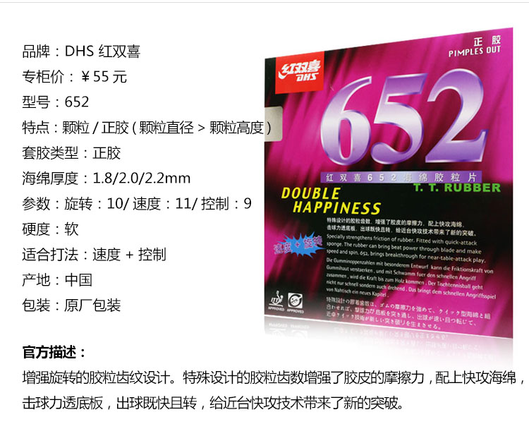 特殊設(shè)計的膠粒齒數(shù)增強了膠皮的摩擦力,配上快攻海綿,擊球力透底板,出球既快且轉(zhuǎn),給近臺快攻技術(shù)帶來了新的突破。