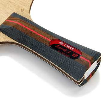 以E-3球板的經(jīng)典五木結(jié)構(gòu)為基礎(chǔ),再將大芯進(jìn)行真空燒處理,并夾入了柔韌的玻璃纖維,降低了球板的總體重量并能提供充沛的底勁,手感好,吃球深,易控制,適合雙面弧圈打法的五層球板。