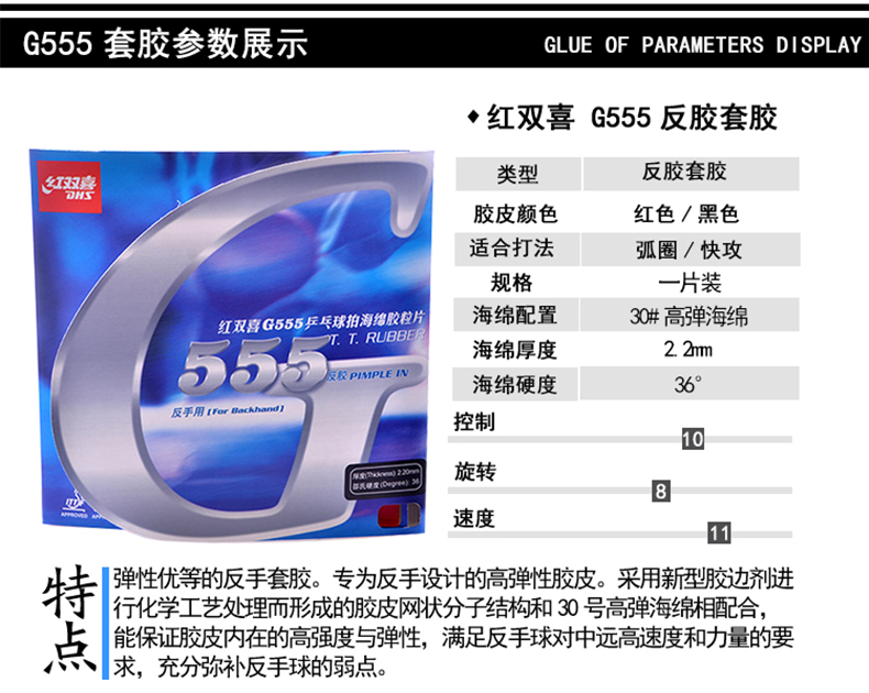 - 商品名稱(chēng):紅雙喜G555反膠套膠