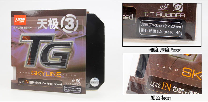 - 商品名稱:紅雙喜DHS 天極3天極三(新包裝)專業(yè)粘性乒乓球膠皮反膠套膠