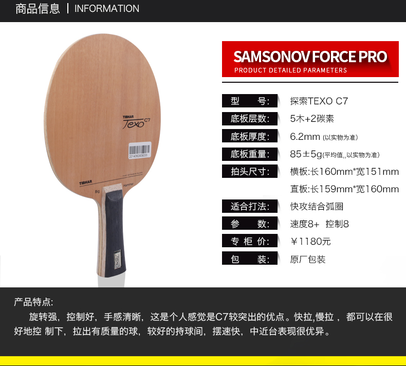 - 商品名稱:挺拔Tibhar C7探索 專業(yè)乒乓底板