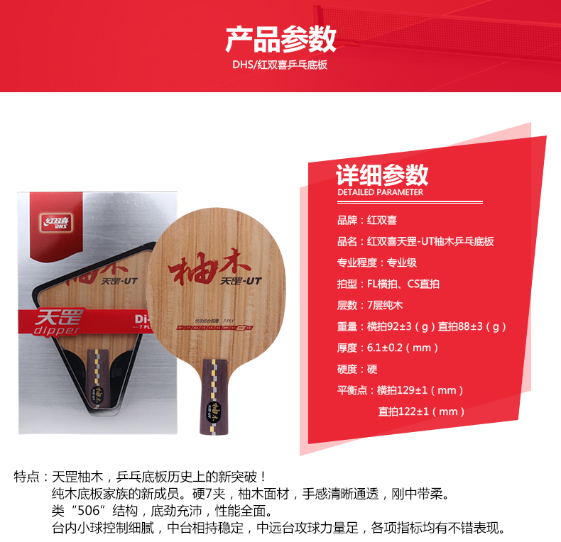 - 商品名稱:紅雙喜DHS 天罡Di-UT 柚木 專業(yè)乒乓球底板