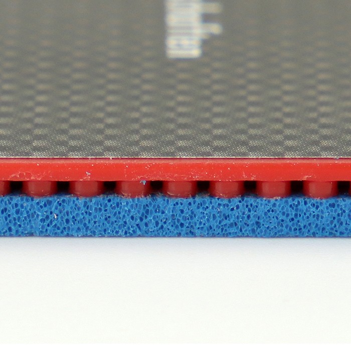 具粘著力,拉緊的靈活表面膠皮,結合柔軟的藍色海綿,提供旋轉的同時確保了出色的控球感。