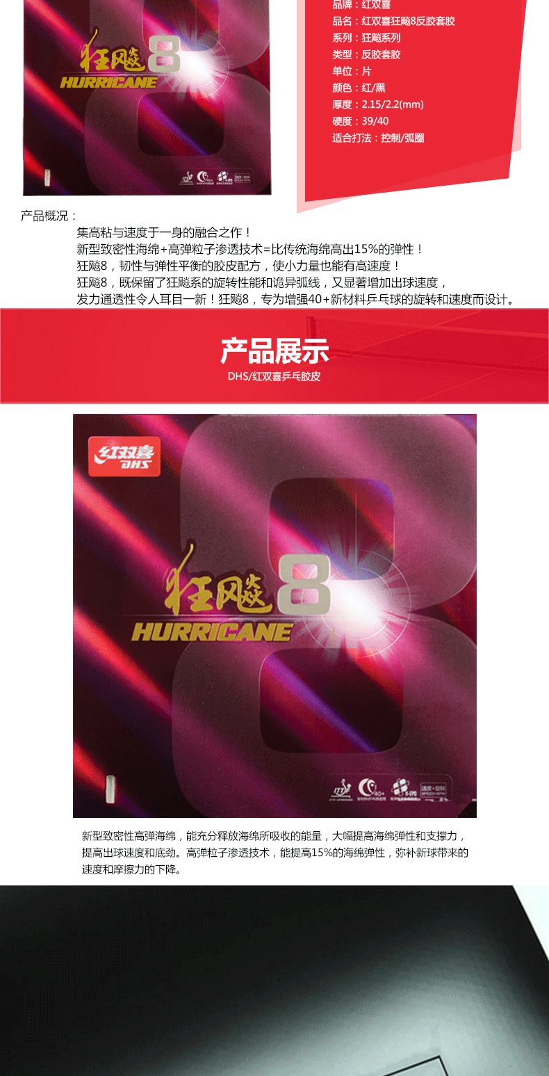 - 商品名稱:紅雙喜DHS 狂飆8 狂飚8 運(yùn)海25#海綿