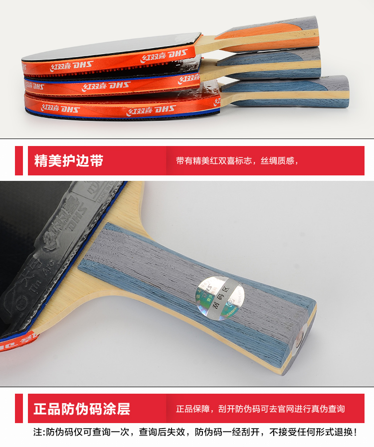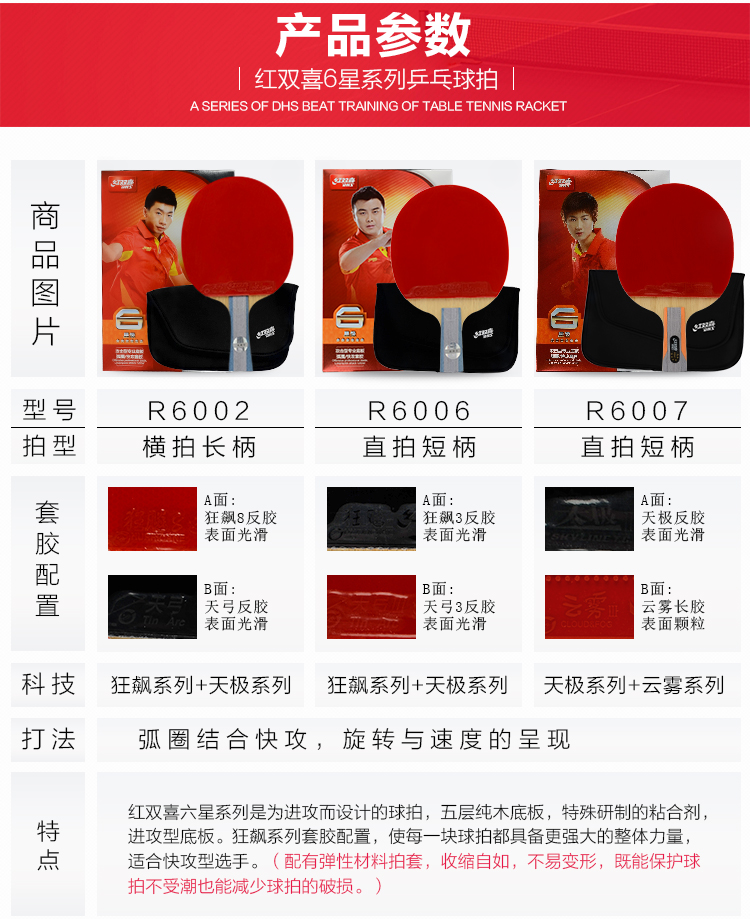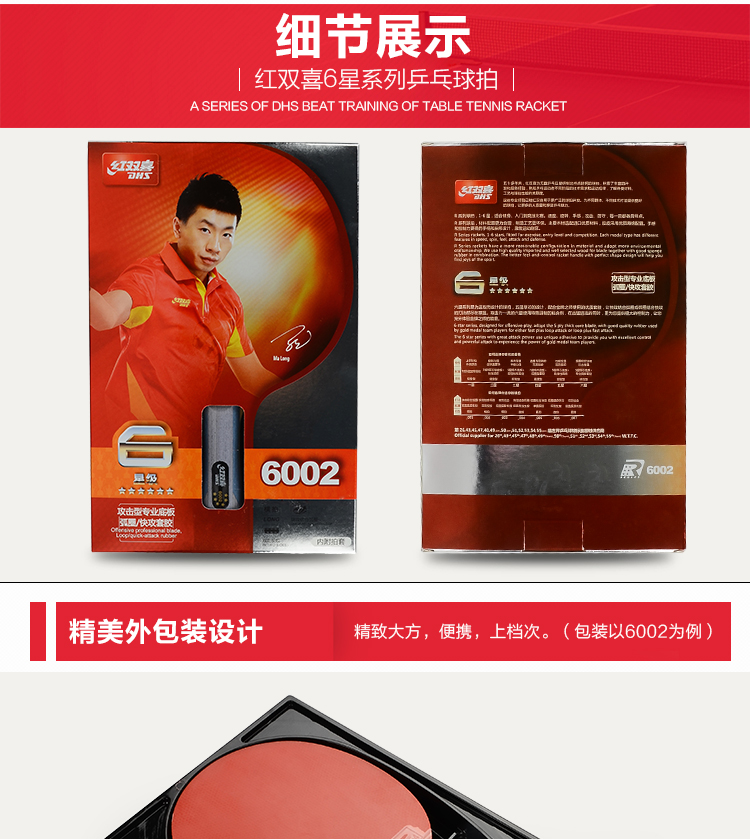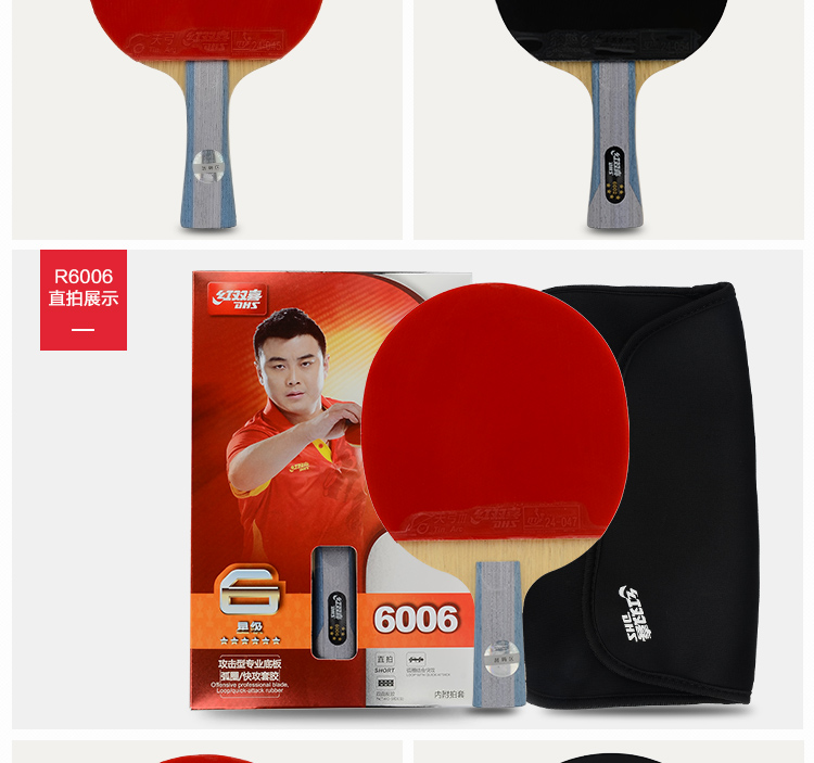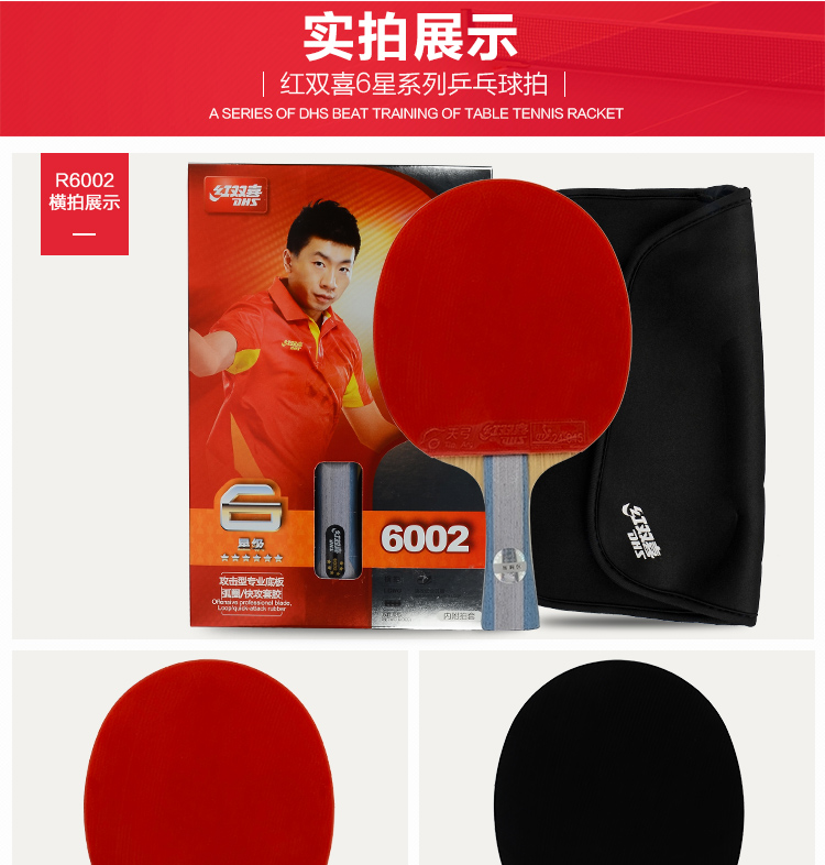 - 商品名稱:紅雙喜DHS 六星成品拍 雙面反膠 贈紅雙喜拍套