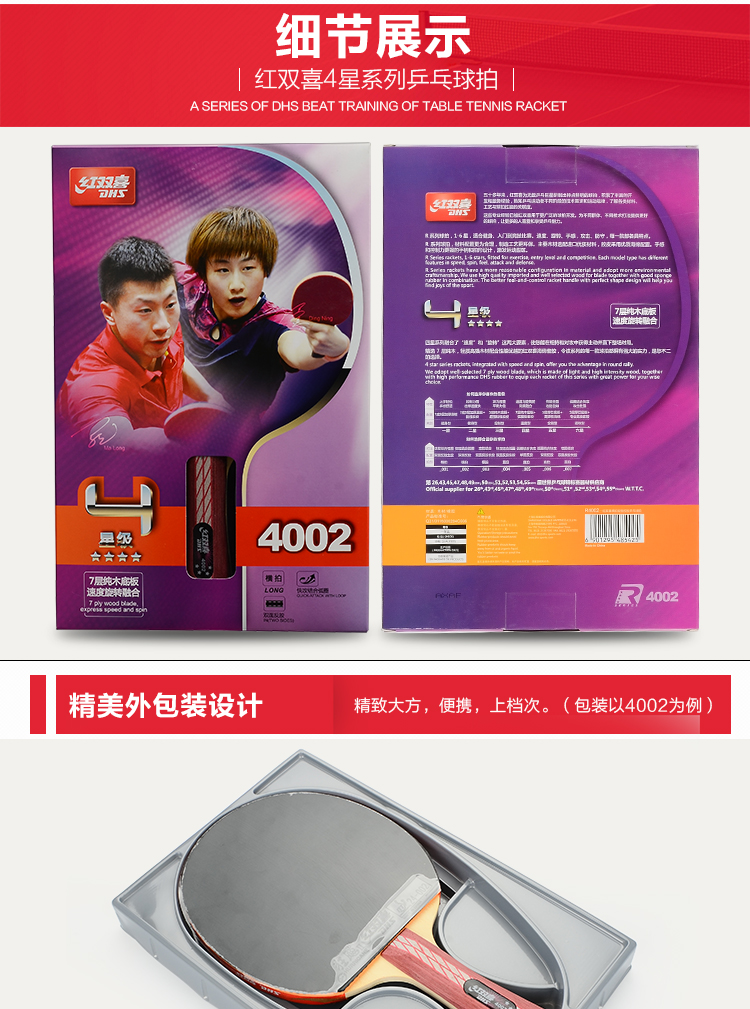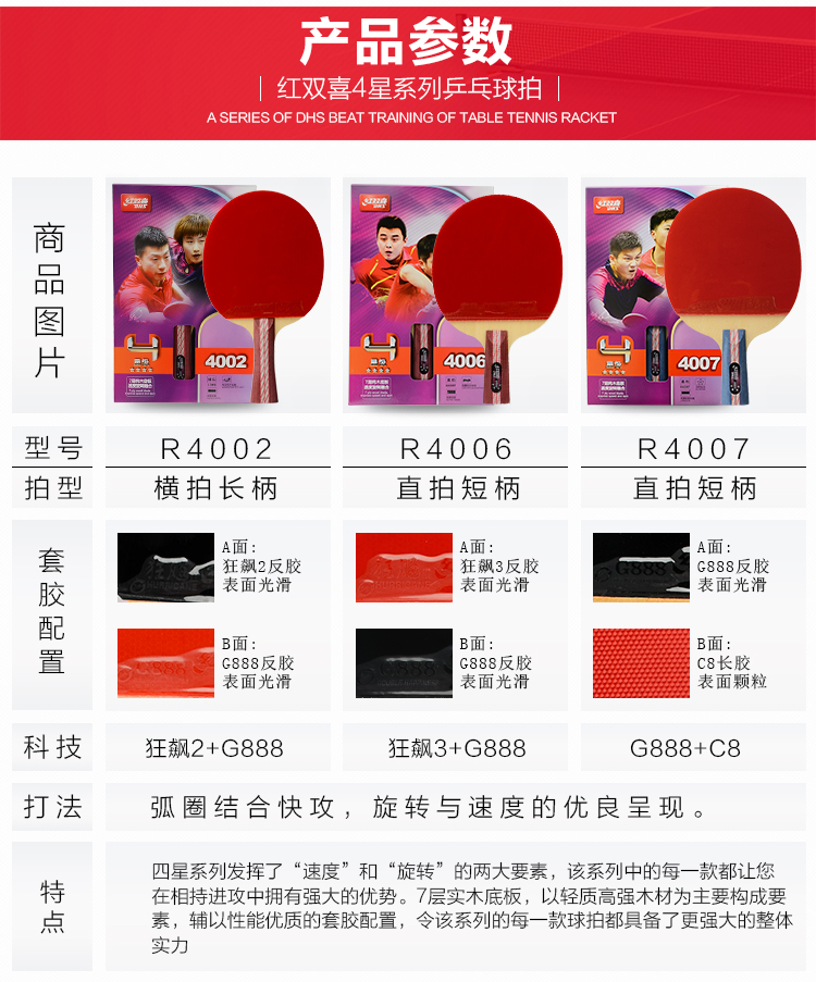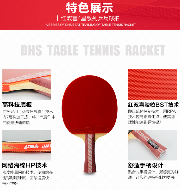 - 商品名稱:紅雙喜DHS 四星成品拍 雙面反膠
