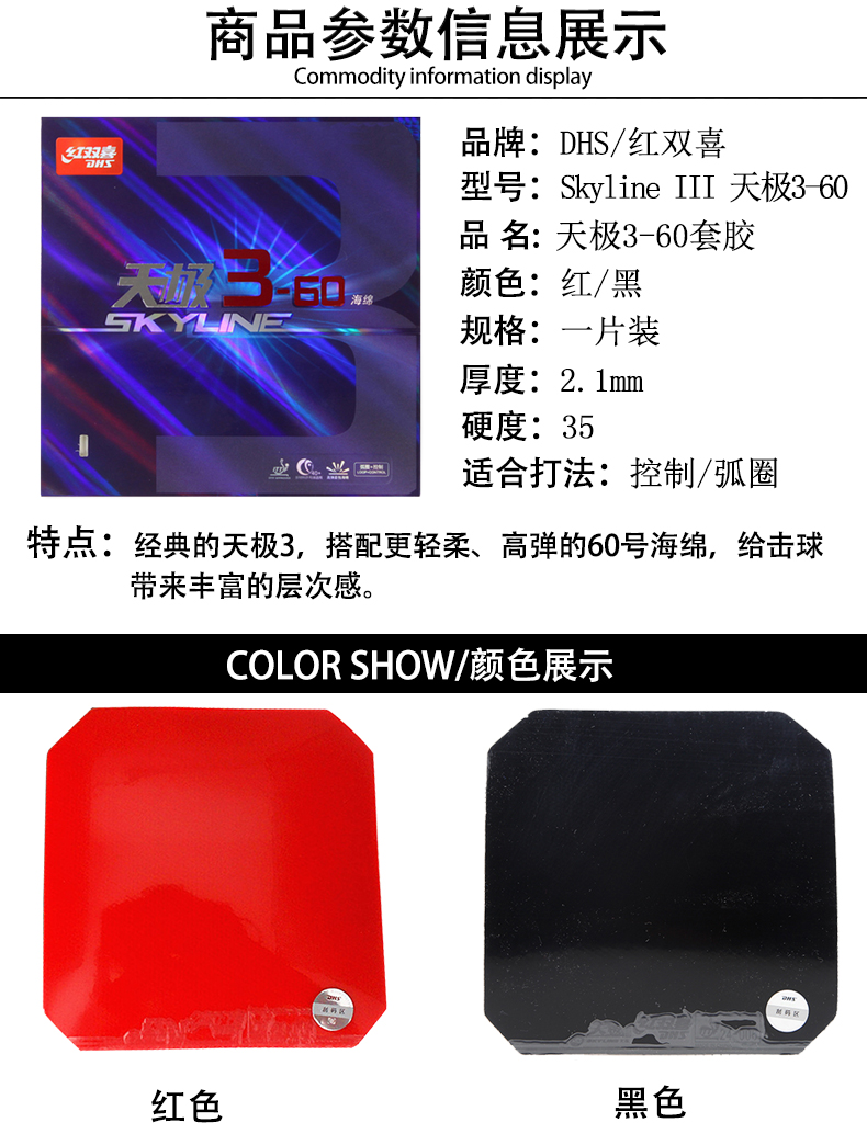 - 商品名稱:紅雙喜DHS 天極3-60套膠天極360