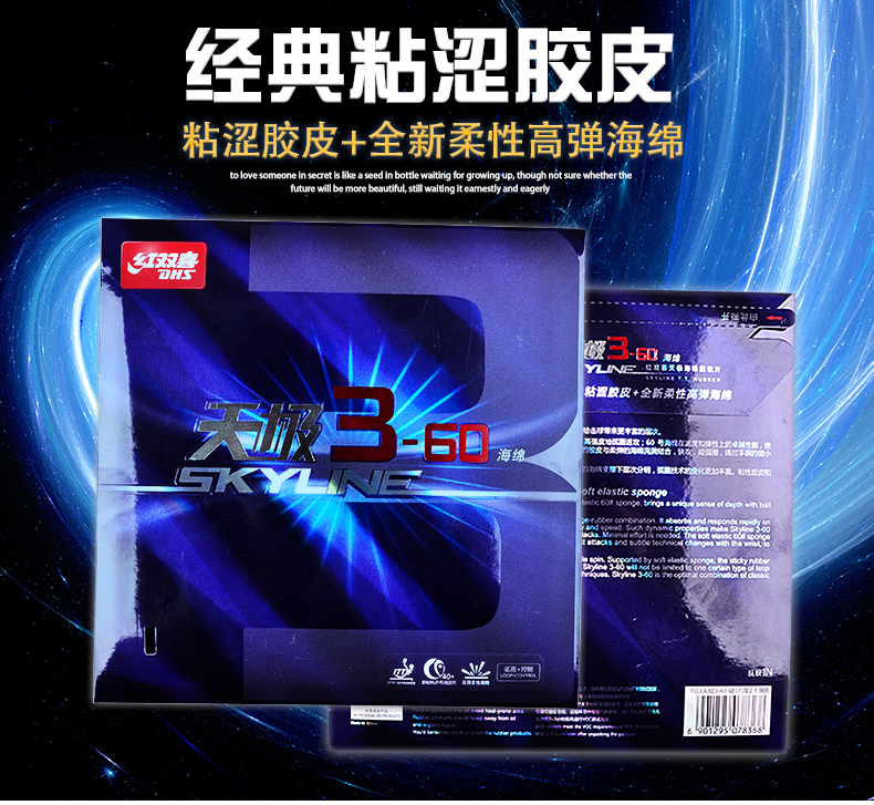 經(jīng)典的天極3,搭配更輕柔、高彈的60#海綿,給擊球帶來更豐富的擊球層次。