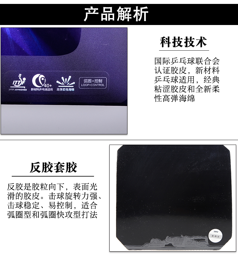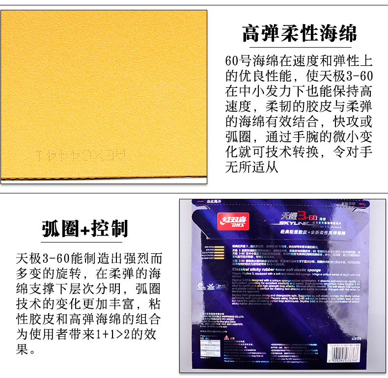 天極360能帶來強烈多變的旋轉,在柔彈海綿的支撐下層次分明,弧圈技術更加豐富。粘性膠皮加60#海綿將會帶來1+1>2的效果。