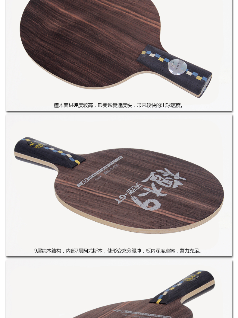 - 商品名稱:紅雙喜DHS 天罡檀木9 九夾純木的檀木底板