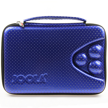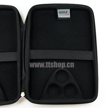 亮藍色硬殼拍套,內(nèi)可放置三顆乒乓球。