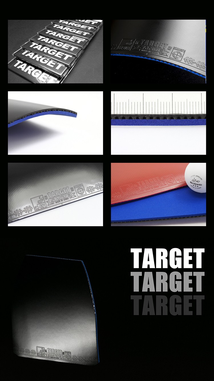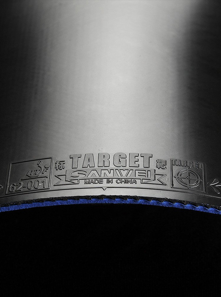 我測試使用的底板是:直拍蝴蝶普碳,我單面反膠快弧打法,反面粘貼的是分色紙及一塊類似于“吉田海偉”式的方形舊海綿,權(quán)當護板棉使用。同面積的這款藍海綿標靶膠皮感覺與2.20mm的普狂III差不多重量,我一直使用普狂III膠皮較多,又是單面粘貼反膠,所以重量絲毫沒有影響手感。前后試打了三次,累計時間約6個多小時,現(xiàn)將膠皮試打測評體會分享如下: