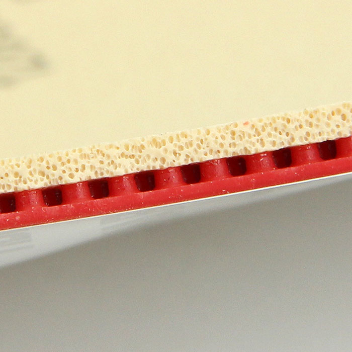 要做出充足的彈性,實(shí)際上并非那么容易:首先需要套膠擁有充分的形變能力,既要做到深度持球,也要做到高速回彈;其次需要海綿有足夠的支撐力,為膠皮的形變提供支撐,同時(shí)又不能喪失整體感。