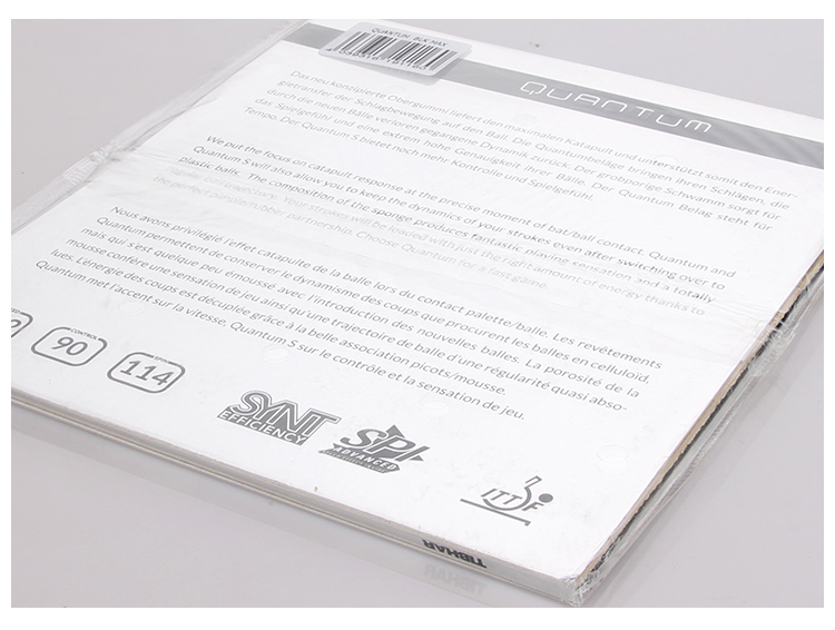 挺拔新一款全新設(shè)計(jì)的套膠,并以物理學(xué)中的“量子”(Quantum)為之命名,充滿神秘的科技感。使用量子,便可以“讓你兩分球”,輕描淡寫,卻已霸氣外露。
