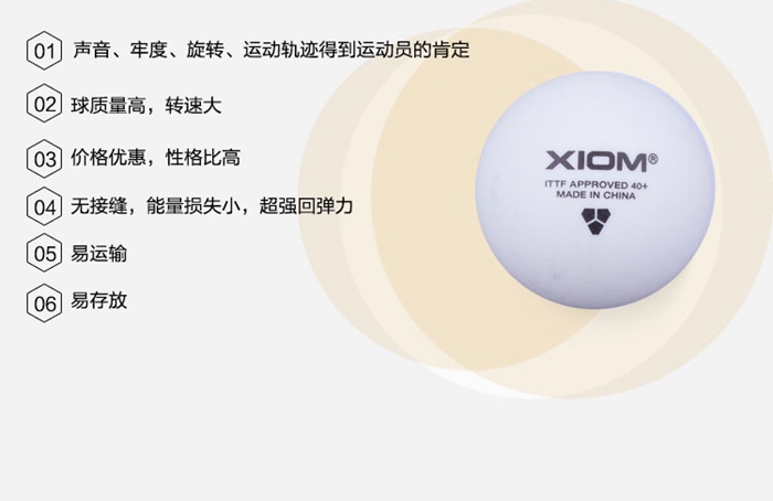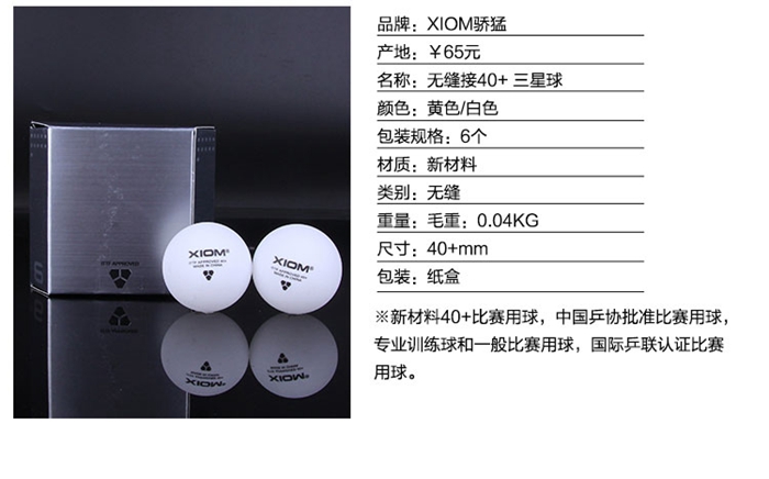 - 商品名稱:驕猛XIOM 新材料40+無(wú)縫三星乒乓球白色 六只裝