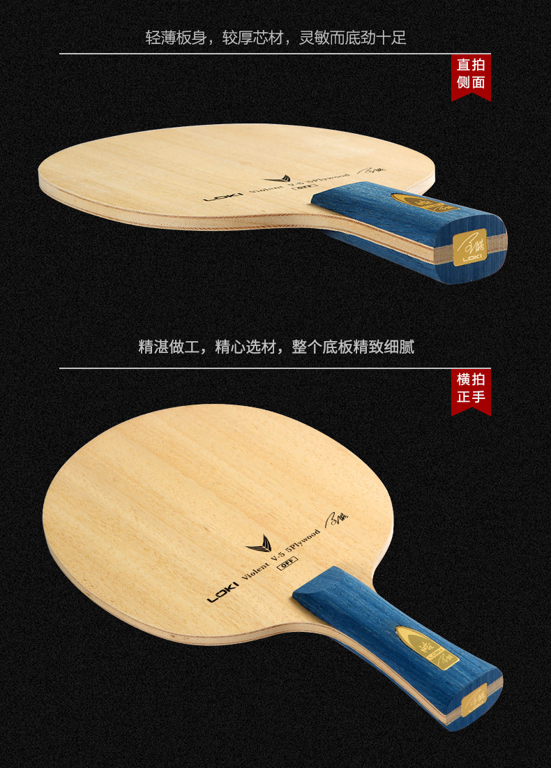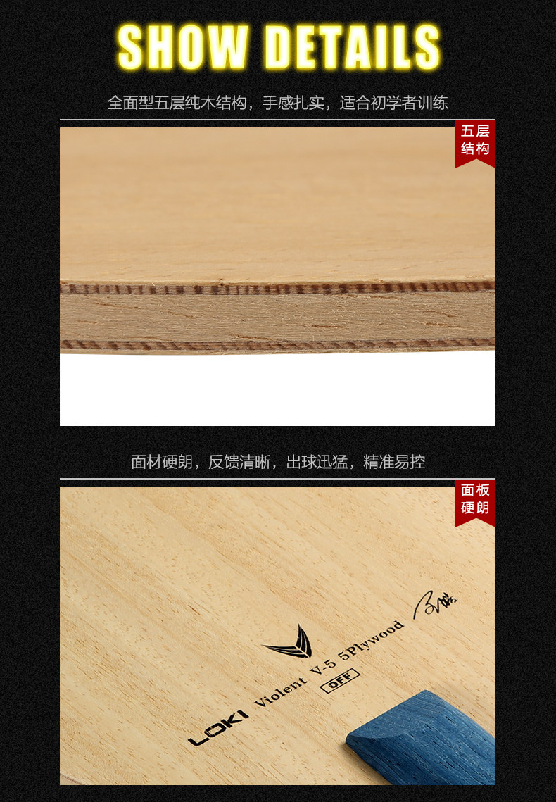 LOKI雷神 迅猛V5,全面型五層純木結(jié)構(gòu),芯層厚實而不失通透,加強了底板自身的發(fā)力效果,手感扎實,適合初學(xué)者訓(xùn)練使用。