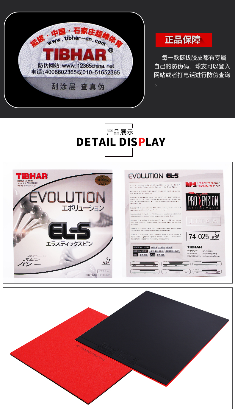 商品名稱:挺拔TIBHAR EVOLUTION EL-S 變革能量全能軟型內(nèi)能乒乓球膠皮反膠套膠