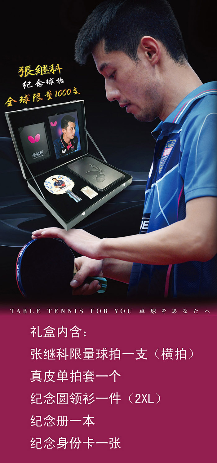 商品名稱:蝴蝶BUTTERFLY 2017張繼科限量紀(jì)念球拍禮盒(橫板FL柄) 全球限量發(fā)售 先搶先得 極具收藏價(jià)值!?。?/p>