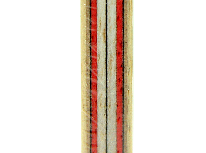 簡介:兩側碳纖維為薄碳纖維層,保證球板的出球速度和力量。夾在兩層巴沙木之間的為厚碳纖維層,保證球板的快速形變恢復與高容錯性。