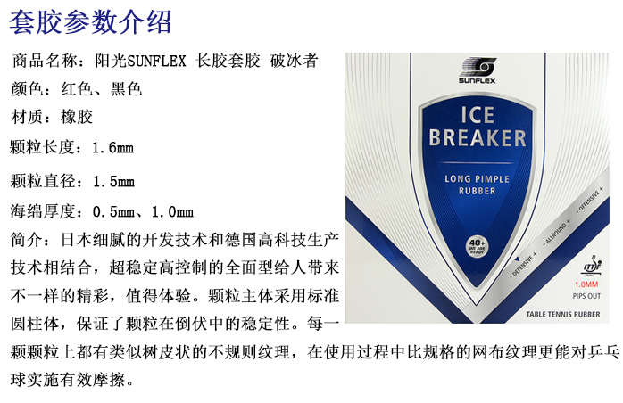 - 商品名稱:陽光SUNFLEX 長(zhǎng)膠套膠 破冰者