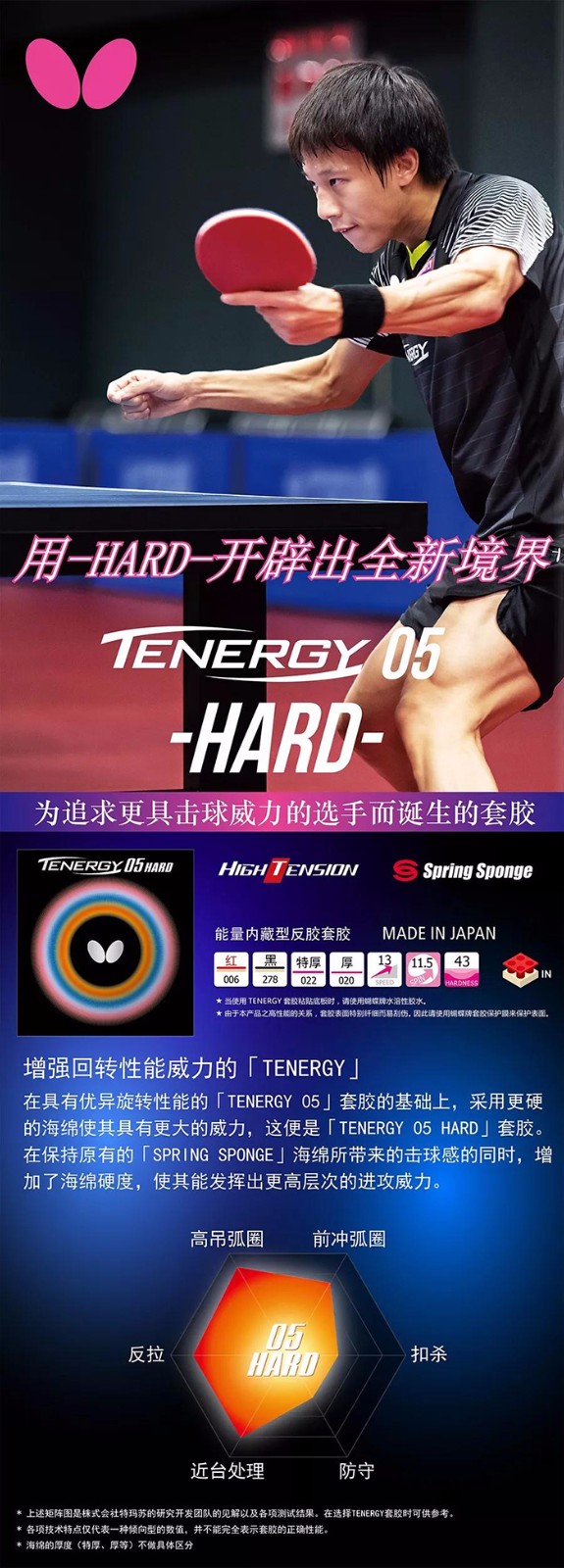 商品名稱:蝴蝶Butterfly 2018新款套膠 TENERGY 05 HARD 06030 更大威力 更強旋轉