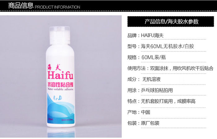 商品名稱:海夫Haifu 水溶性粘合劑(無(wú)機(jī)膠水) 60ml裝