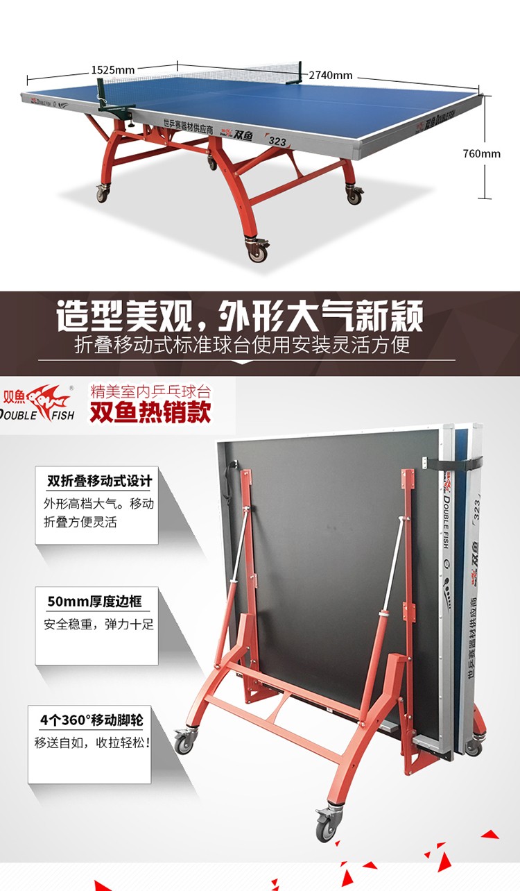 - 商品名稱:雙魚 323球臺 家用折疊移動標(biāo)準(zhǔn)室內(nèi)乒乓球臺