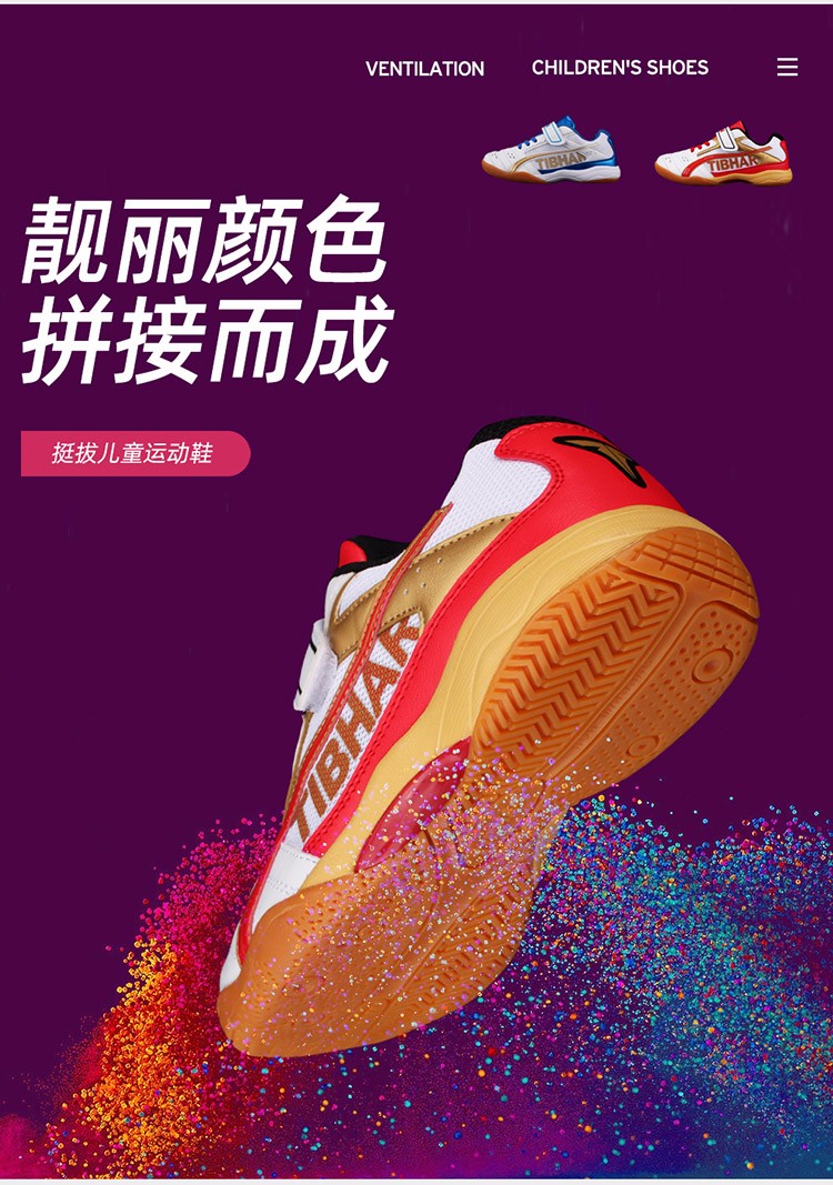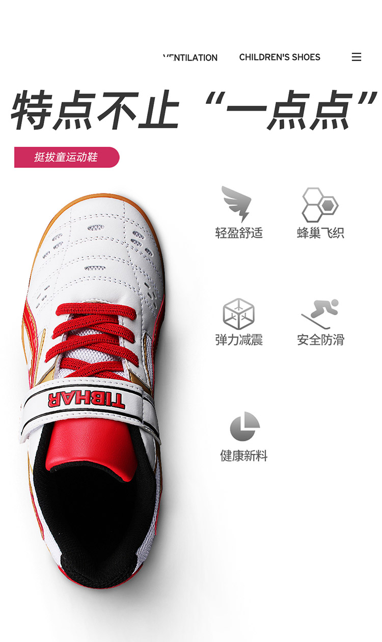 商品名稱:挺拔Tibhar 01920 白/紅 專業(yè)兒童乒乓球運動鞋 舒適透氣 輕松穿脫