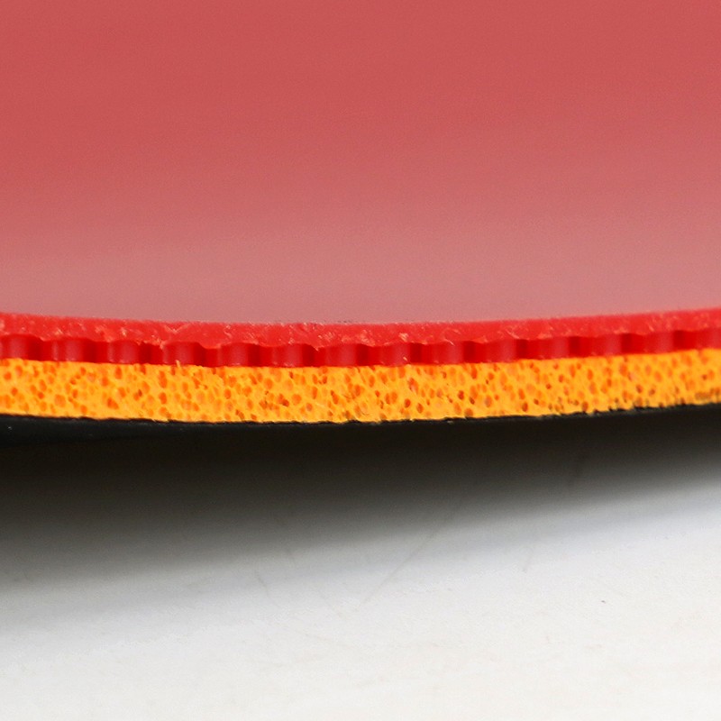 ESC科技(海綿單元放大科技):海綿層中放大型氣孔的尺寸大于普通氣孔,為套膠提供卓越的彈射效應(yīng),在上旋球的對戰(zhàn)中制造更高弧線。同時,ESC科技加固底板與膠皮之間的連接,在擊球中回饋更好的手感和更清脆的擊球聲。