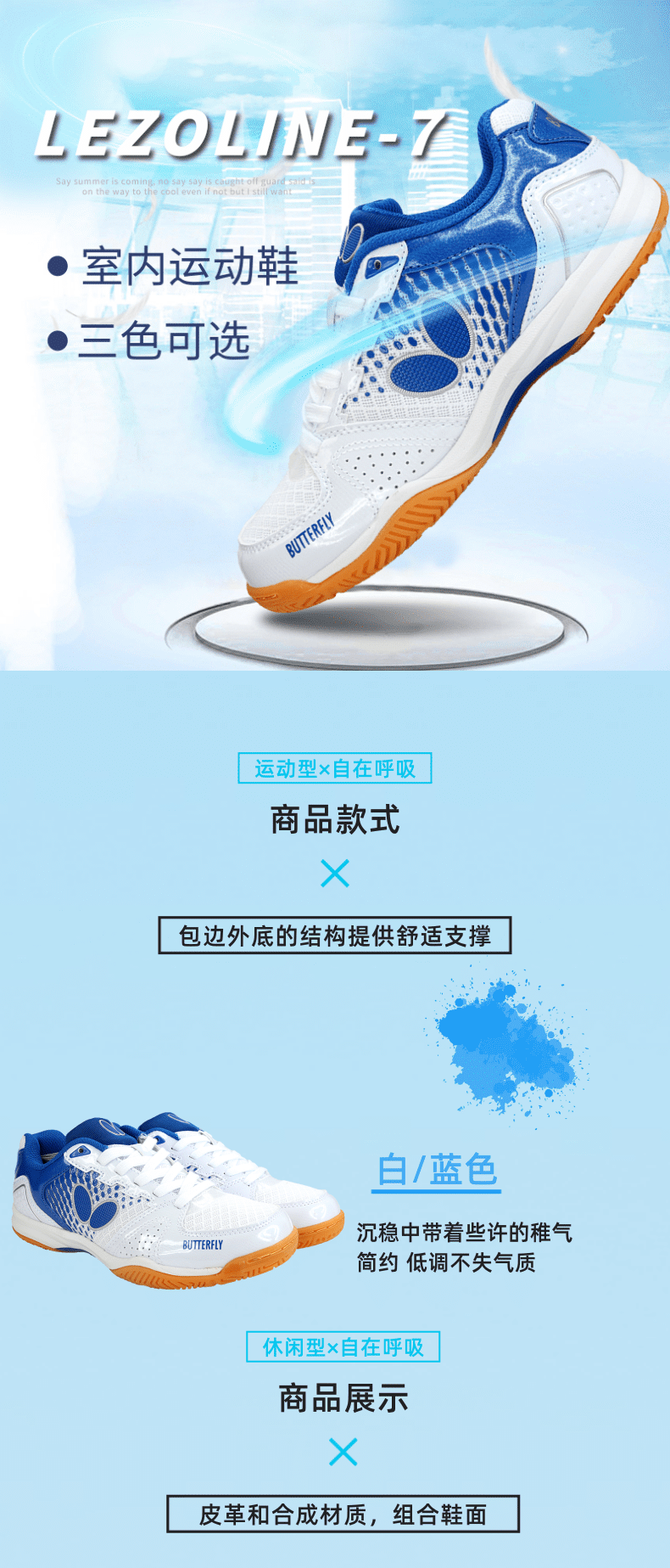 - 商品名稱:蝴蝶Butterfly LEZOLINE-7-03 專業(yè)乒乓球運(yùn)動(dòng)鞋 白藍(lán)色