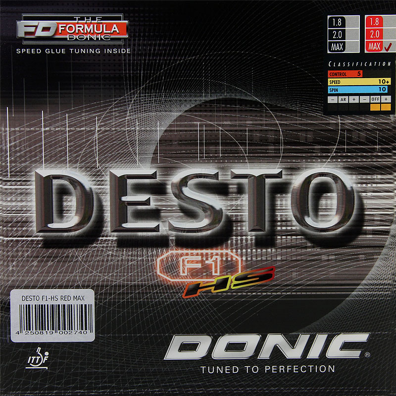 ◆ 許多選手喜歡使用硬海綿的膠皮,并在使用層多快速膠之后感受到極致的速度和旋轉(zhuǎn)的表現(xiàn)。我們根據(jù)相同的原理設(shè)計出DONIC DESTO F1HS,結(jié)合了快速膠效果及50度的硬海綿,內(nèi)建快速膠效果中和了高硬度的海綿,讓它在擊球時有著更軟的手感、更好的控球。這樣的結(jié)果讓DONIC DESTO F1HS像是一般中硬度的傳統(tǒng)膠皮涂上多層快速膠一般。DONIC F1HS,你所能想象的最高速,F(xiàn)ormula系列的產(chǎn)品極速新登場。